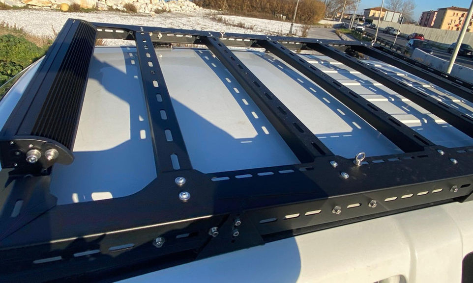 • ASOLE su TUTTE LE TRAVERSE e sul PERIMETRO ESTERNO per il montaggio e fissaggio di qualsiasi accessorio, tendalino, piastre sabbia, ruota di scorta, ecc….